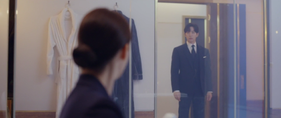 '구원'은, 이 날 킹더랜드 본부장으로 취임을 앞두고 있었는데요. 바쁜 만큼, 얼른 핸드폰과 대본을 챙기려던 찰나, 이상하게 핸드폰만 없어져있는 것을 이상하게 여기지만, 비서인 '노상식'이 챙겼을 거라 믿고 스위트룸에 나오려고 하던 도중...