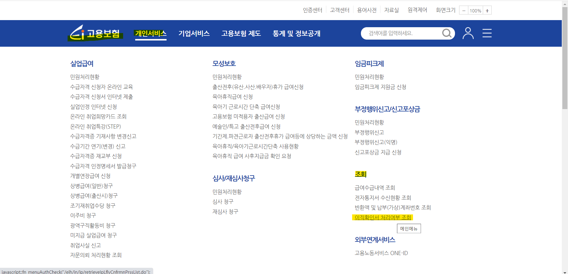 [개인서비스] -> [조회] -> [이직확인서 처리여부 조회]하셔서 처리가 되셨는지 확인하시면 됩니다.